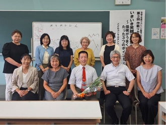 盛況のうちに進められてきた「第3回作新リカレント講演会」の最後には、作新学院大学女子短期大学部同窓会しもつき会の鈴木和枝会長からのサプライズ企画として、原坂一郎先生の著書にサインをいただき、受講者へのプレゼントをかけたじゃんけん大会が行われました。その後、ご講演いただいた原坂一郎先生、ご参加いただいた皆様への感謝の言葉が述べられ、和やかな雰囲気で閉会となりました。