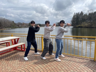スピーチの中で学生は「これからもっと仲良くなりたい」「同じ部活動に所属しているため、チームワークを深めたい」と述べ、これからの友情や学生生活に期待する様子が見られました。また、自由テーマでは「グループ全員が部活動に入っており、オリエンテーションでもトレーニングは欠かせないと思い、運動しているポーズで写真を撮った。」「ゴーカートの景品でお揃いのバッジが当たったことが奇跡だと思い写真を撮った。」など、それぞれのグループが互いの共通点を見つけるほか、その日の思い出から設定したテーマについて発表していました。 -